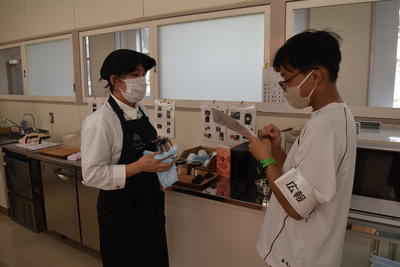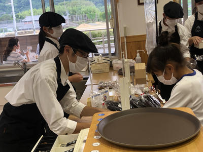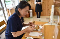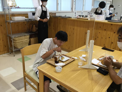 担当の先生は、「今日初めて、ケーキセットの業務を担当してもらいました。すぐに慣れ、スムーズにケーキをセットできています。今日一日で、ずいぶんスピードアップしたんですよ。」と高く評価していました。