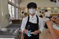 手袋、ネット帽、エプロンなどをつけています。衛生面には気を配って取り組んでいます。