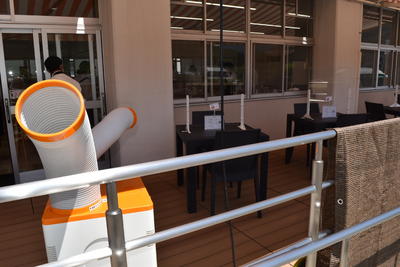 お客様からは「大好きなテラス席にスポットクーラーがあると、とても涼しく、快適です」と喜んでいただきました。