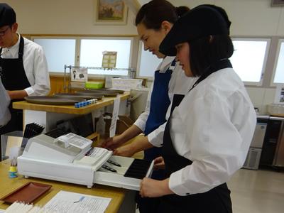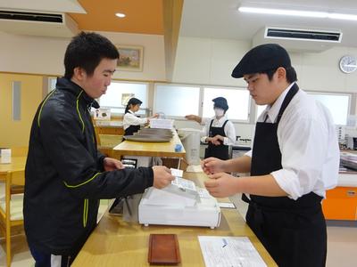 3年生は、営業最後の日。「先輩、ロールケーキをお願いします。」