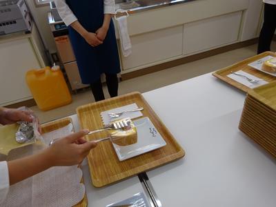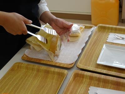 袋の中のケーキを傷つけないよう慎重にはさみで封を切ります。