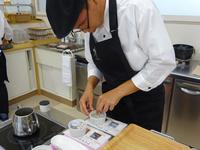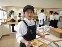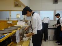 今日のデザートはシフォンケーキ。スタッフが準備をしています。