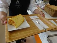 シフォンケーキをお皿に盛り付け。ご注文のシフォンケーキを接客の担当に通しています。