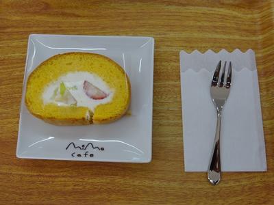 ロールケーキは、やらわかいので、トングでやさしくつかみます。