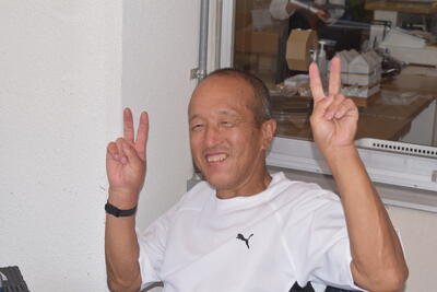暑い中ですが、笑顔でインタビューに答えてくれました。