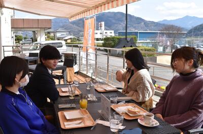 「3年生スタッフが最後の営業に入る今日、なかなか来られなかったみまカフェに、来られてよかった!」