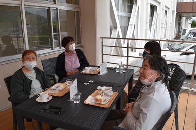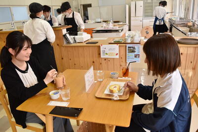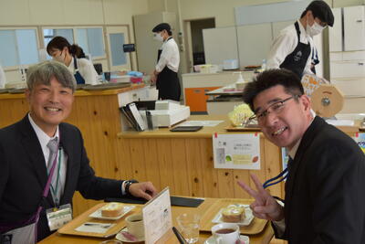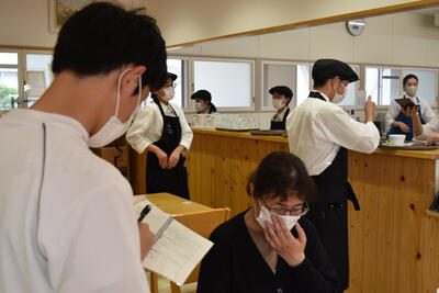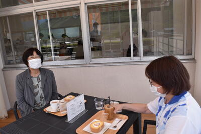 おいしいケーキと好きなドリンクを楽しみながら、先輩たちの接客の丁寧さや慎重さ、カフェ営業の様子を見学しました!