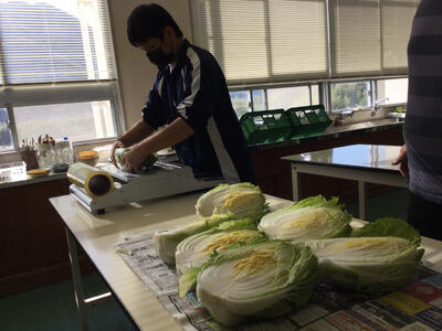「大学いもは、さつまいもを切って、砂糖でからめたらできあがります。」と教えていただきました。
